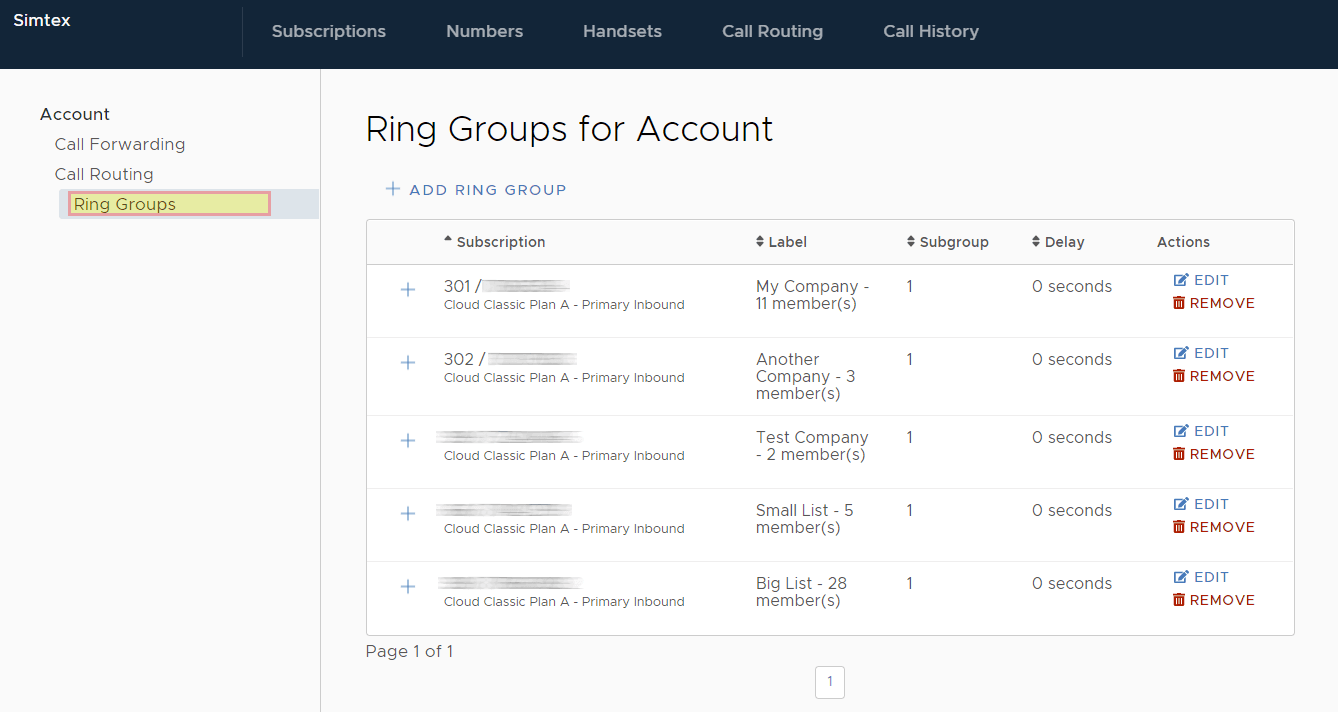 - You will see all ring groups for Primary Inbound subscriptions on your account