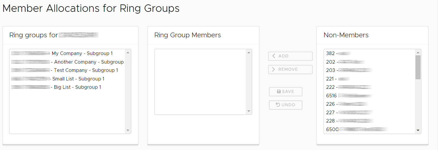 Super Users have access to all Ring Groups on the one page, whereas an End User has the same interface but can only adjust groups for a single subscription.