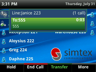 Simtex allows you to transfer calls externally – simply dial the external number (a mobile number, for example).